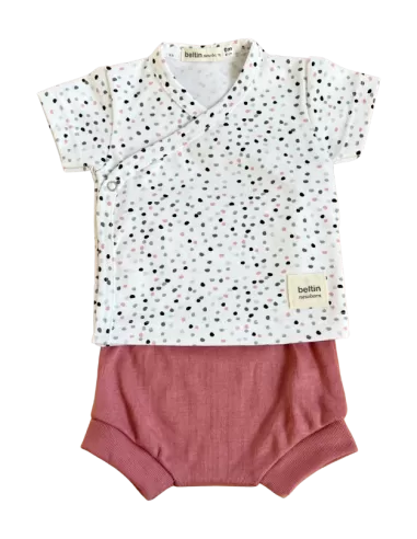 Beltin Newborn como novedad nos trae primeras puestas con chambritas cruzadas en manga corta y pantalón corto estilo bloomer.