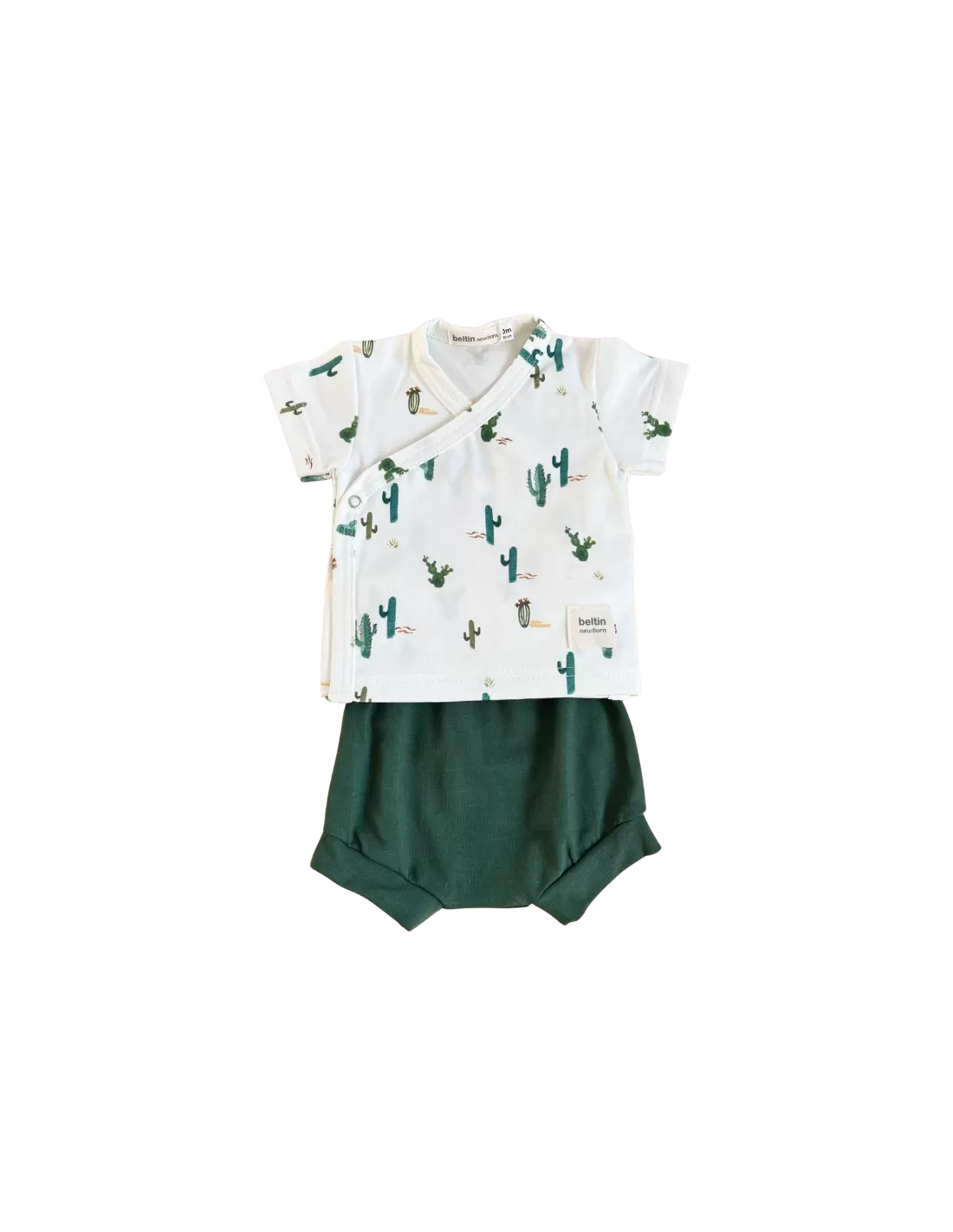 Chambrita cruzada en manga corta. En color blanco roto con estampado de cactus.