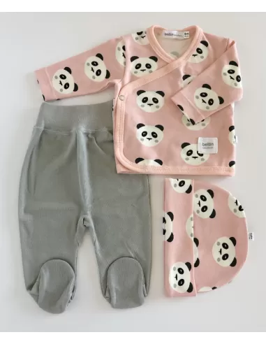 Conjunto de chambrita cruzada manga larga con polaina y gorrito. 100% algodón, muy cómoda, con un tacto muy agradable para el bebé recién nacido. En talla 0M y 1M. La chambrita se abrocha por delante cómodamente con broches totalmente libres de níquel. Fácil de lavar y de secar. Totalmente transpirable. Colores duraderos lavado tras lavado. 100% made in Spain.